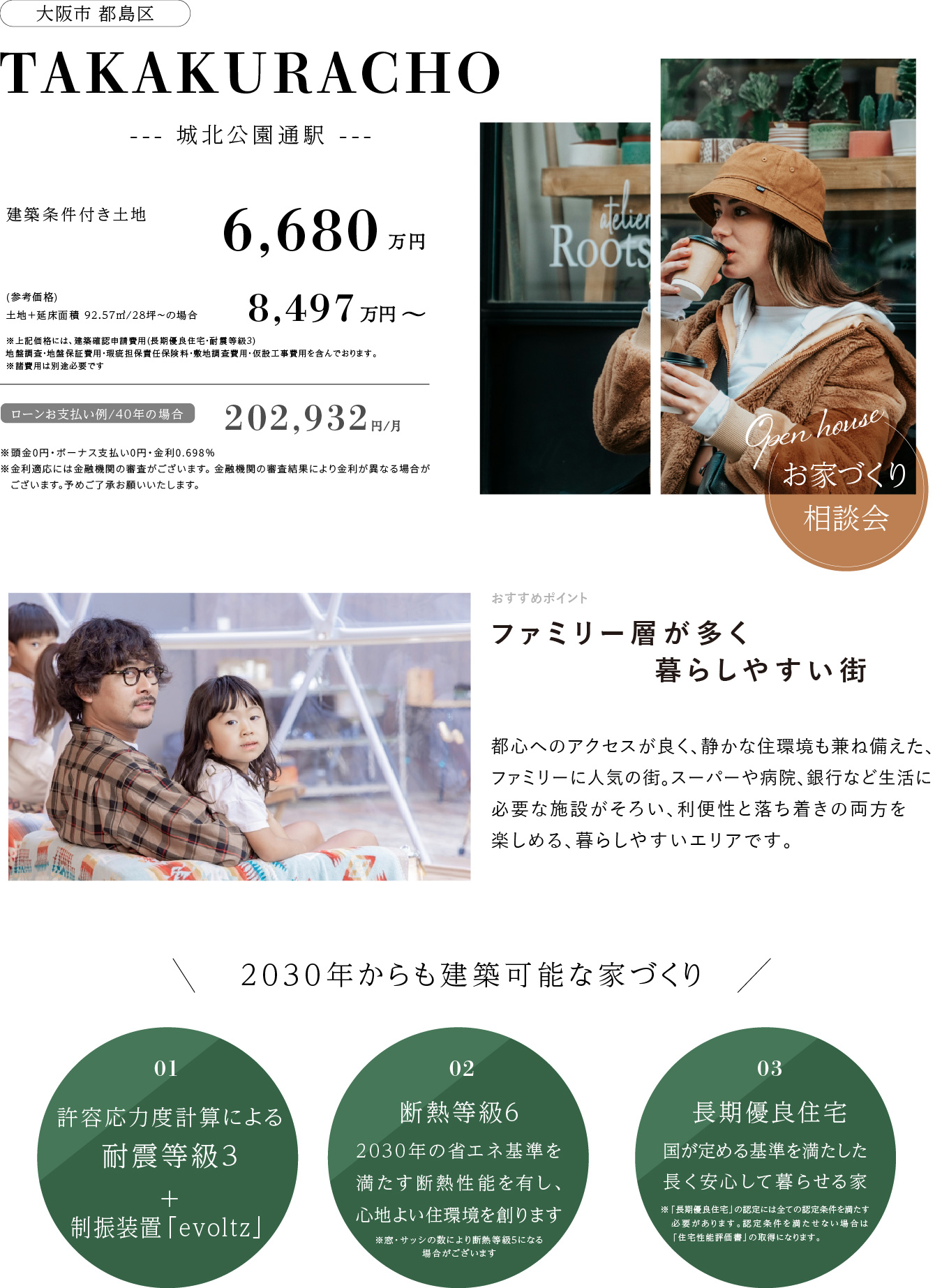 | 販売価格 | 建築条件付き土地 ¥6,680万円 【 土地+建物価格 】¥8,497万円~ |