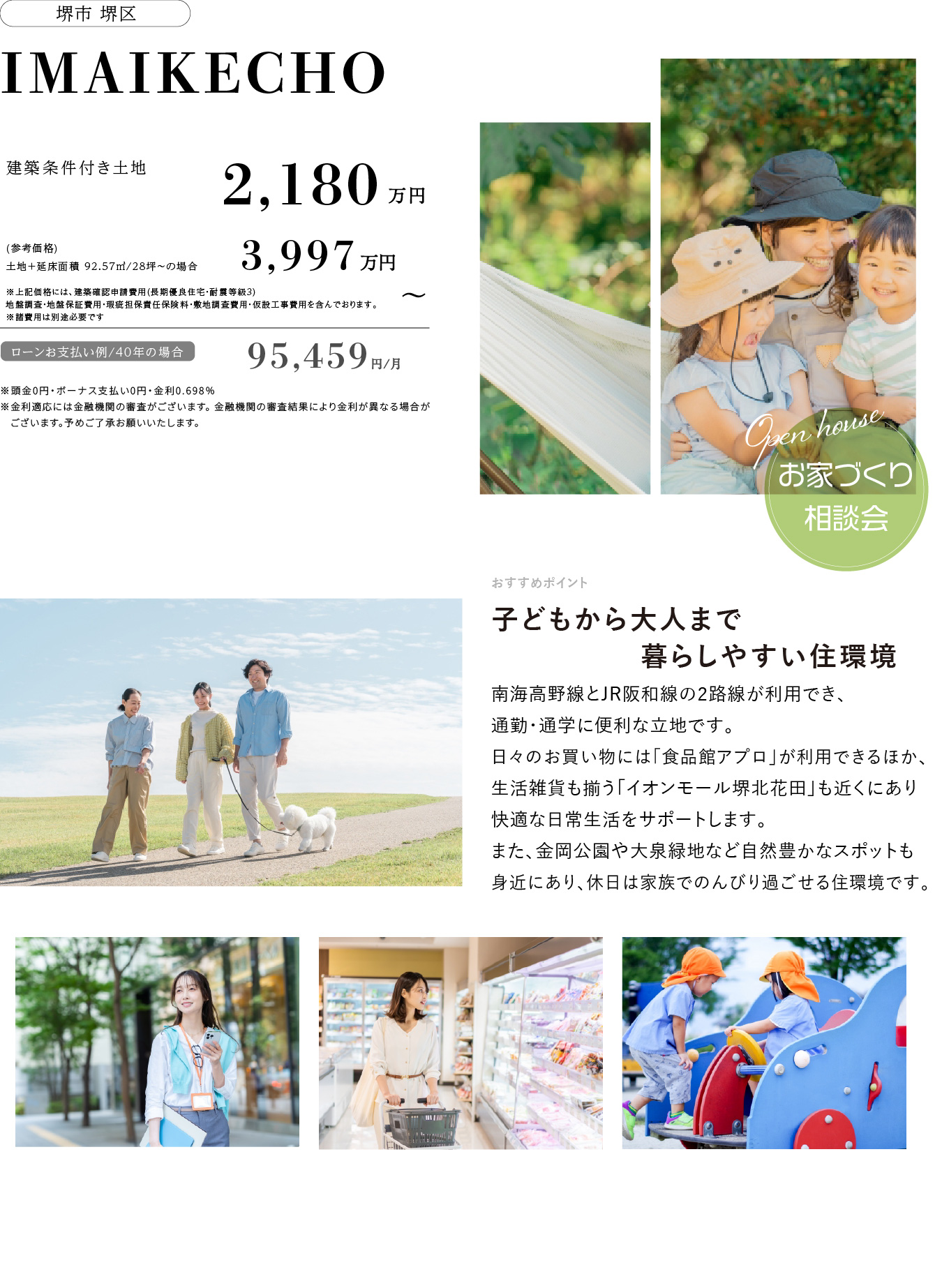 | 販売価格 | 建築条件付き土地 ¥2,180万円 【 土地+建物価格 】¥3,997万円~ |