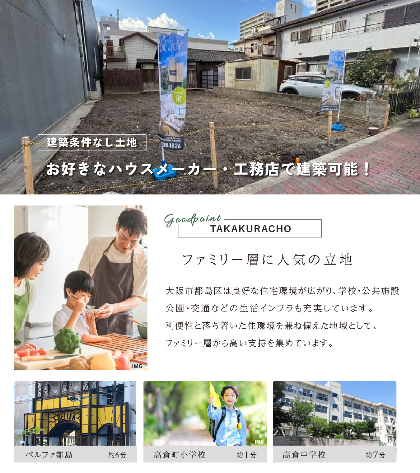 | 交通 | JRおおさか東線「城北公園通」駅 徒歩12分 大阪メトロ谷町線「野江内代」駅 徒歩17分 大阪メトロ谷町線「都島」駅 徒歩17分 |